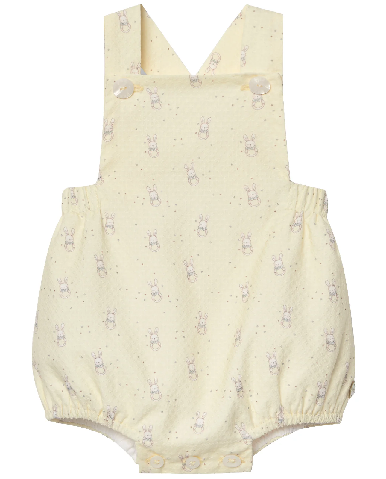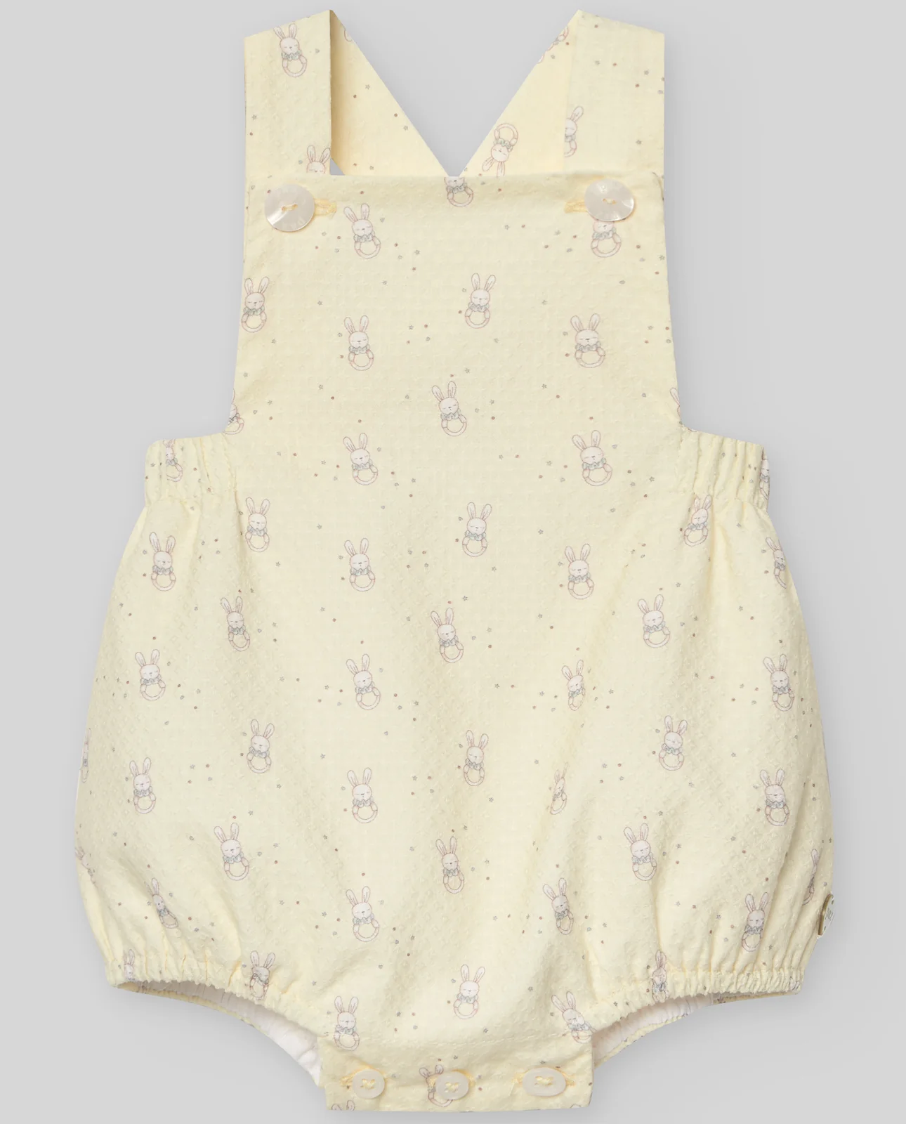 Peto corto para bebé niño con estampado de conejitos. De textura suave y diseño encantador, es una prenda perfecta para el día a día con un toque tierno y divertido.