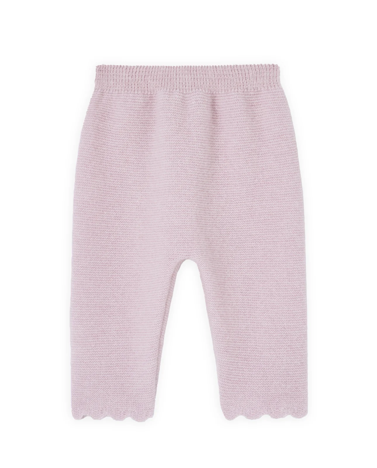 Polaina sin pie para niña en punto liso de lana y cashmere. Cintura elástica para mayor comodidad y acabados festoneados.