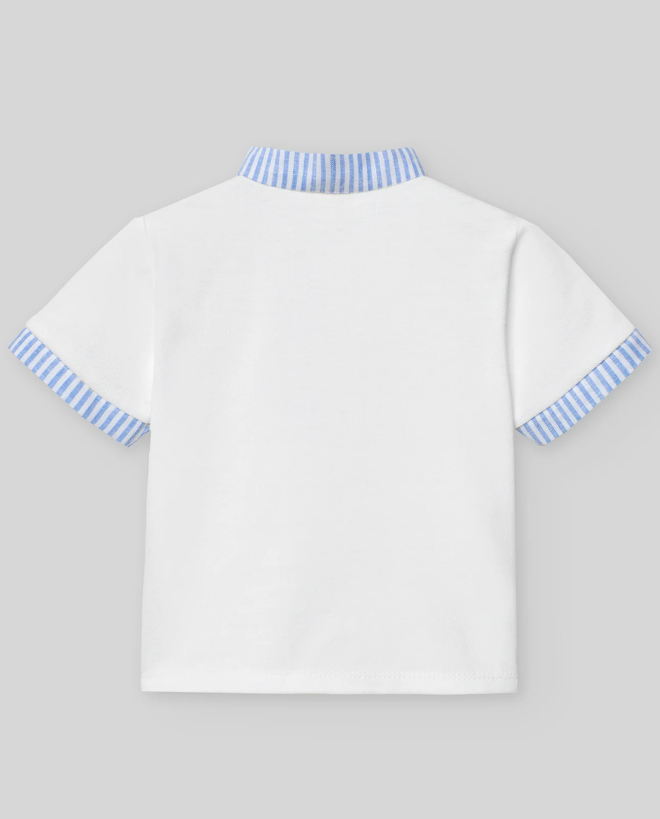Polo de niño en piqué con cuello camisero, cierre de botones y pequeños detalles a contraste en los laterales, de la colección «Baño».