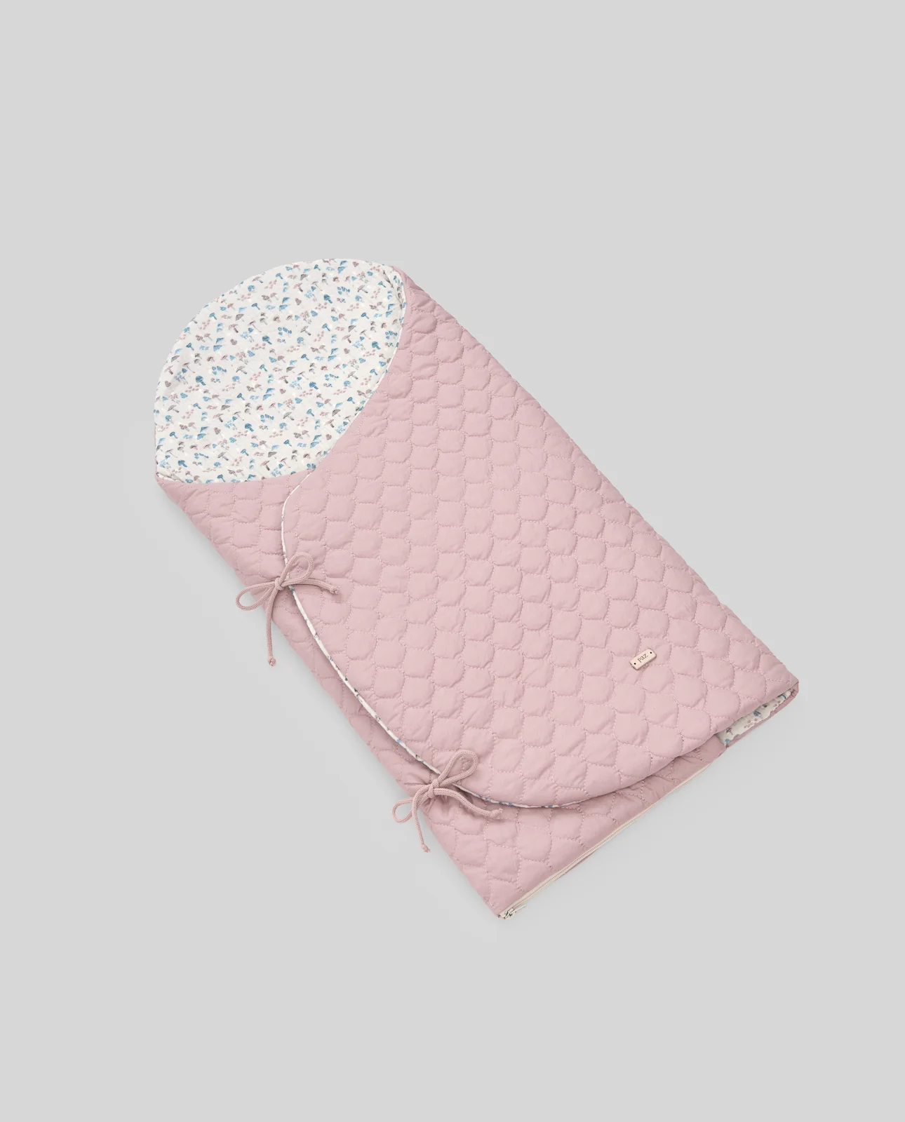 Saco nana con tejido exterior acolchado y estampado de setas interior. Cierre con botones. Se abre totalmente para usar de cambiador. Tiene ojales traseros para portabebé. Ideal para portar al bebé.