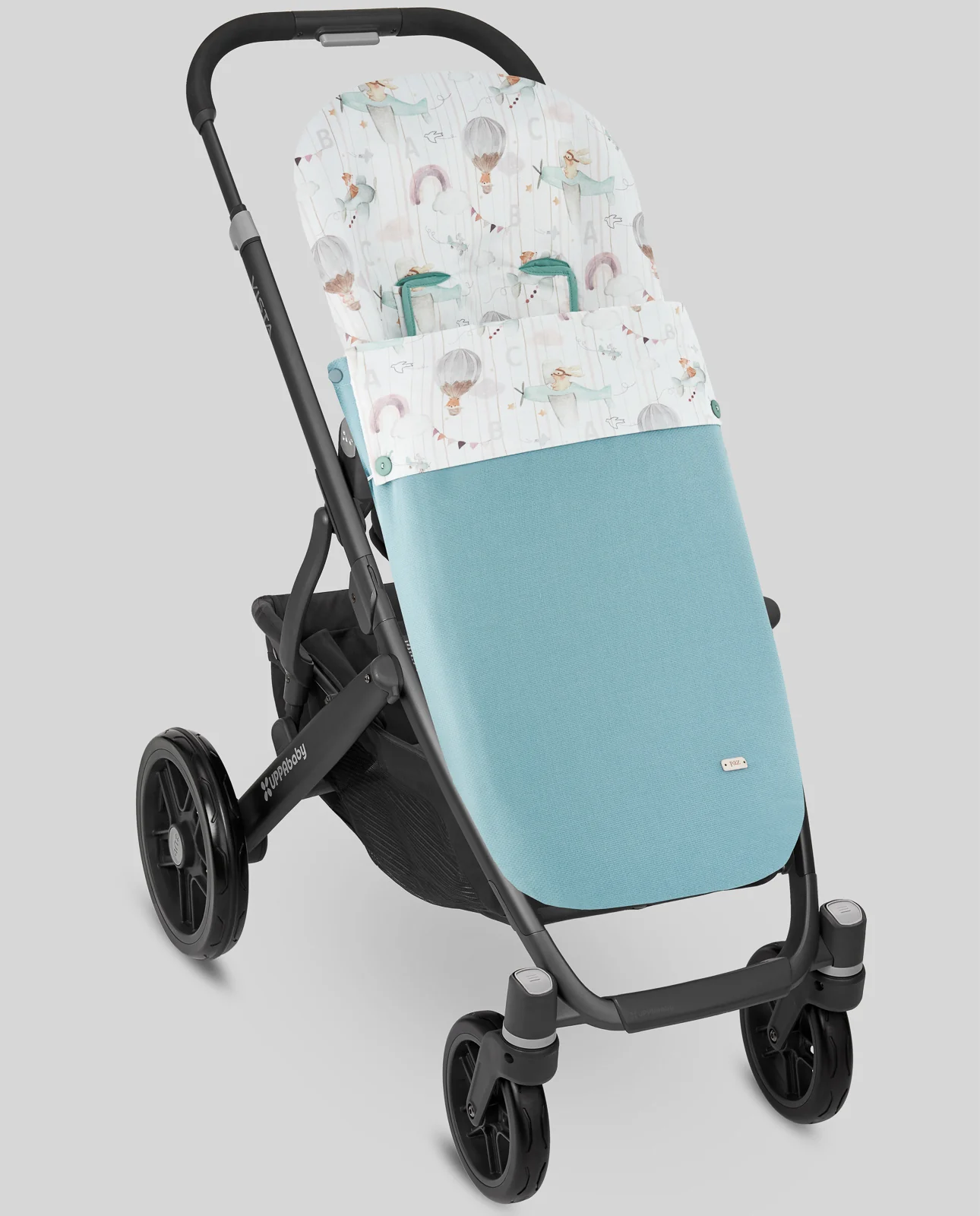 Saco para sillas ligeras o de formato estrecho confeccionado en piqué combinado con popelin estampado de aviones en el interior. Cremalleras laterales para convertir el saco en colchoneta. Refuerzo de polipiel en los pies. Relleno del cubrepiés extraible.