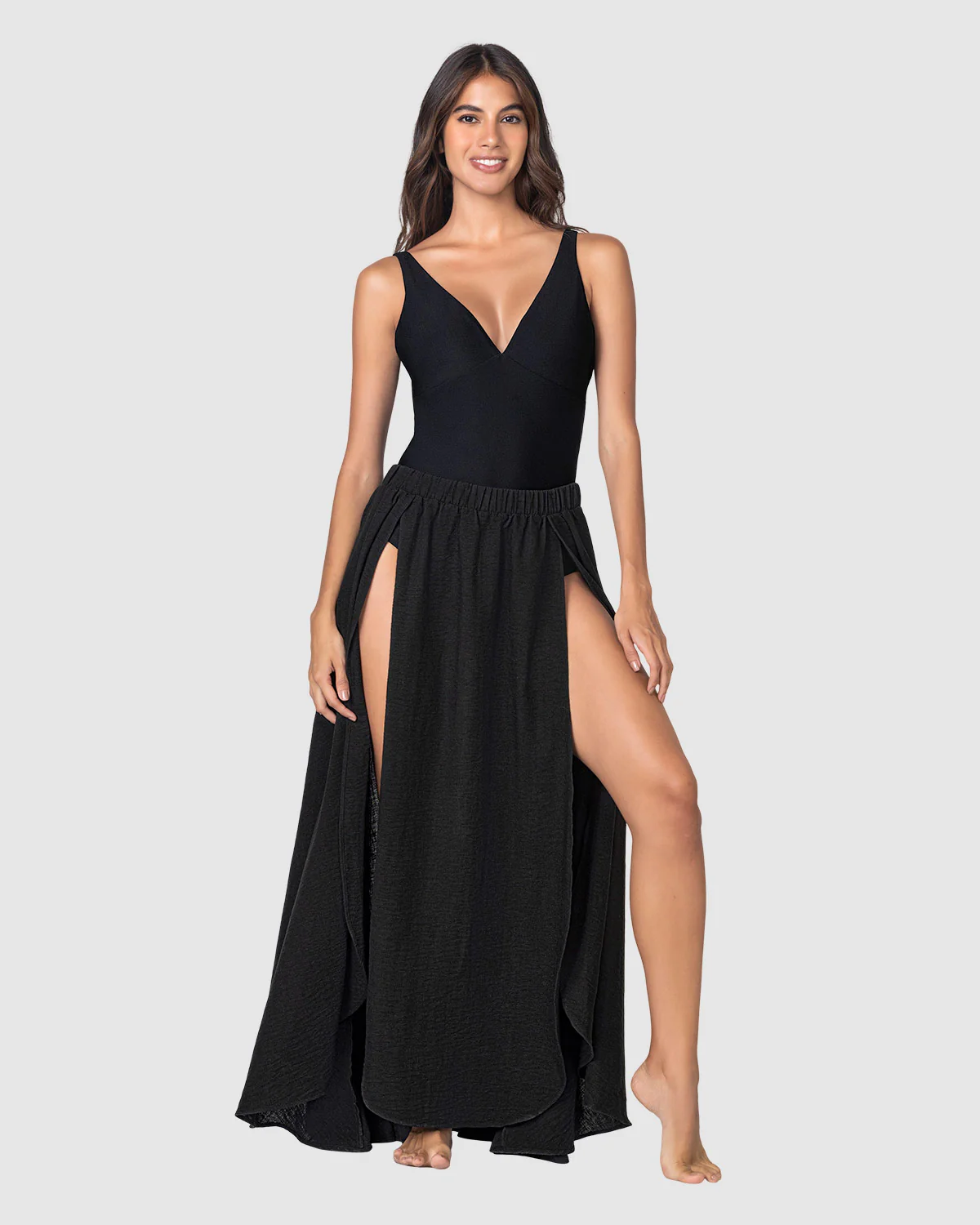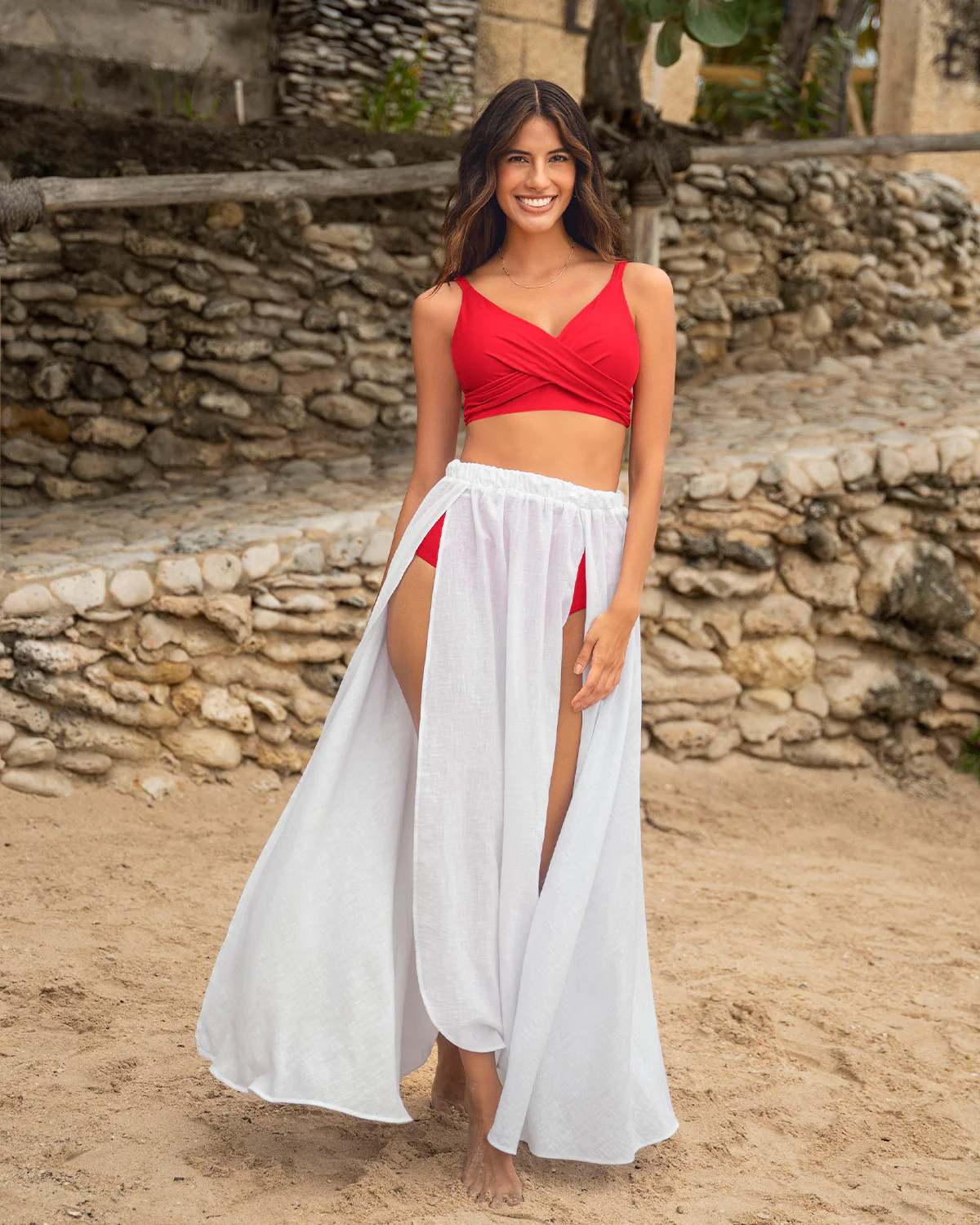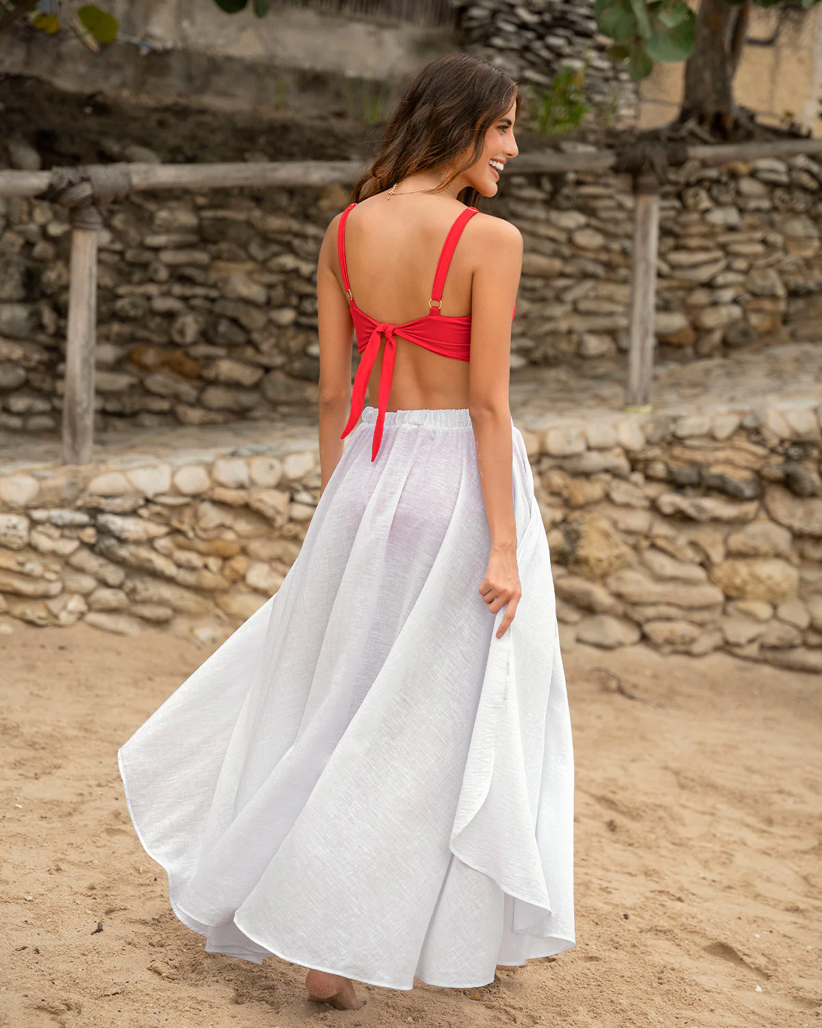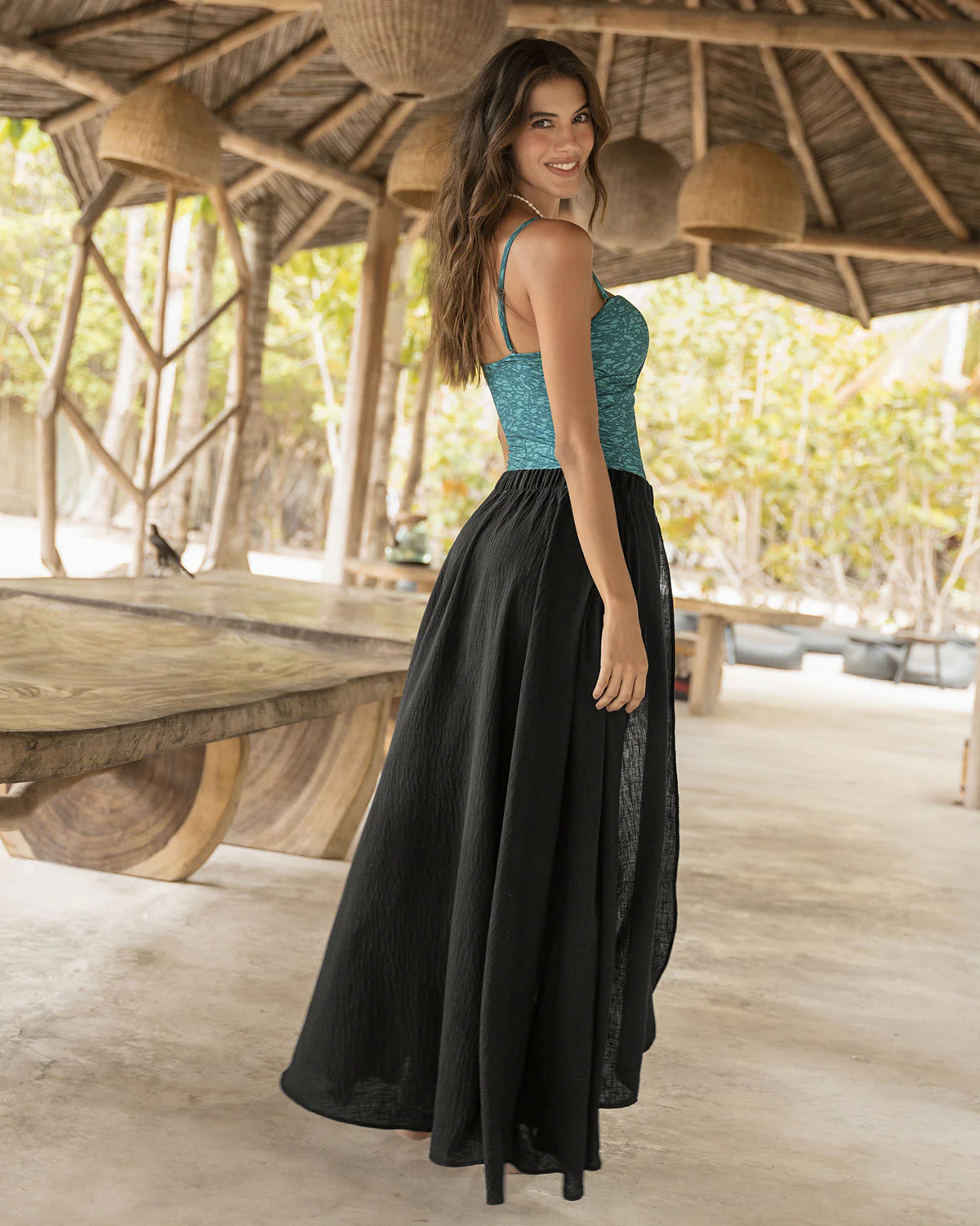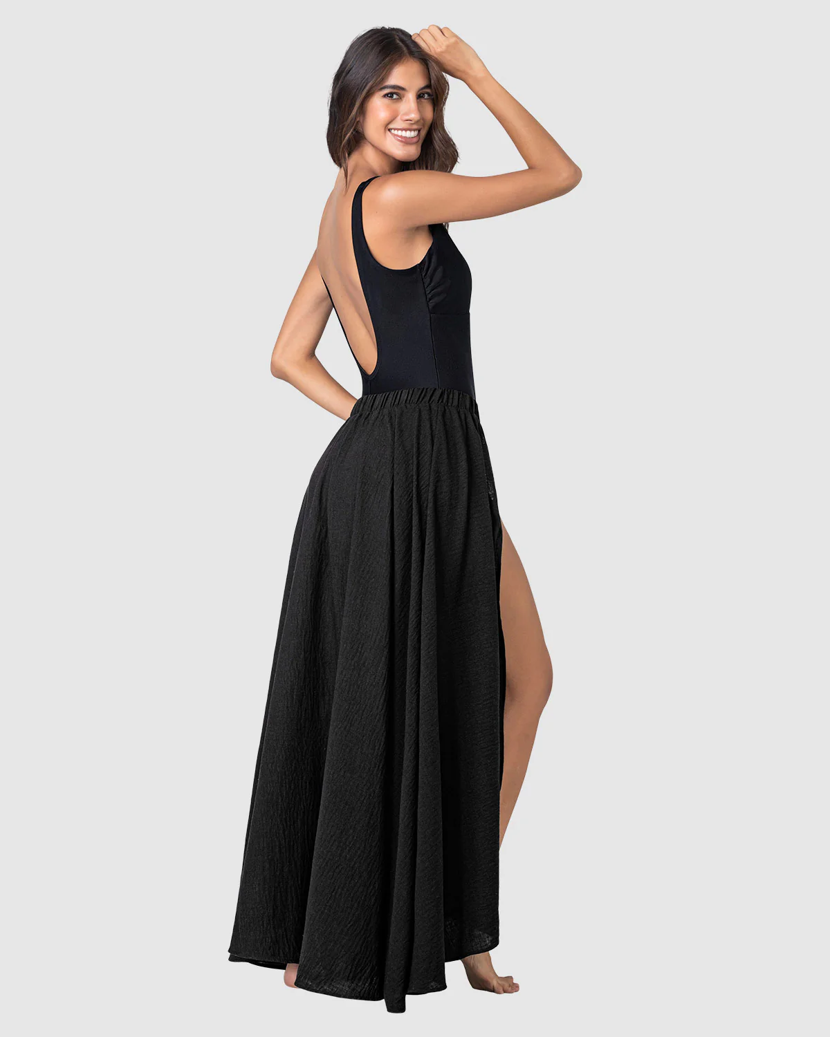 Una falda multifuncional que te acompañará en muchos de tus viajes y salidas. Es muy fresca, y al tener doble abertura en frente, le da el movimiento y la soltura que necesitan las prendas de climas más cálidos. Puedes usarla como salida o como falda exterior ¡la magia la pones tú, con tus accesorios y complementos favoritos!