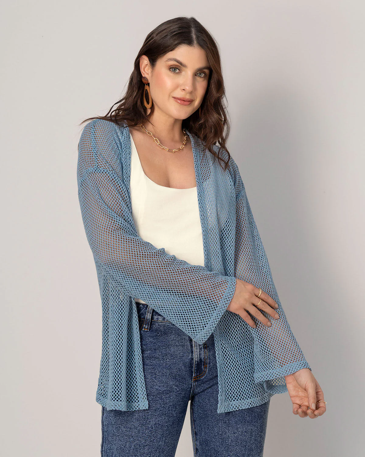La versatilidad y el estilo harán parte de tu día a día con este saquillo abierto elaborado en tela tipo malla, una opción perfecta para complementar tus looks con elegancia y sofisticación.