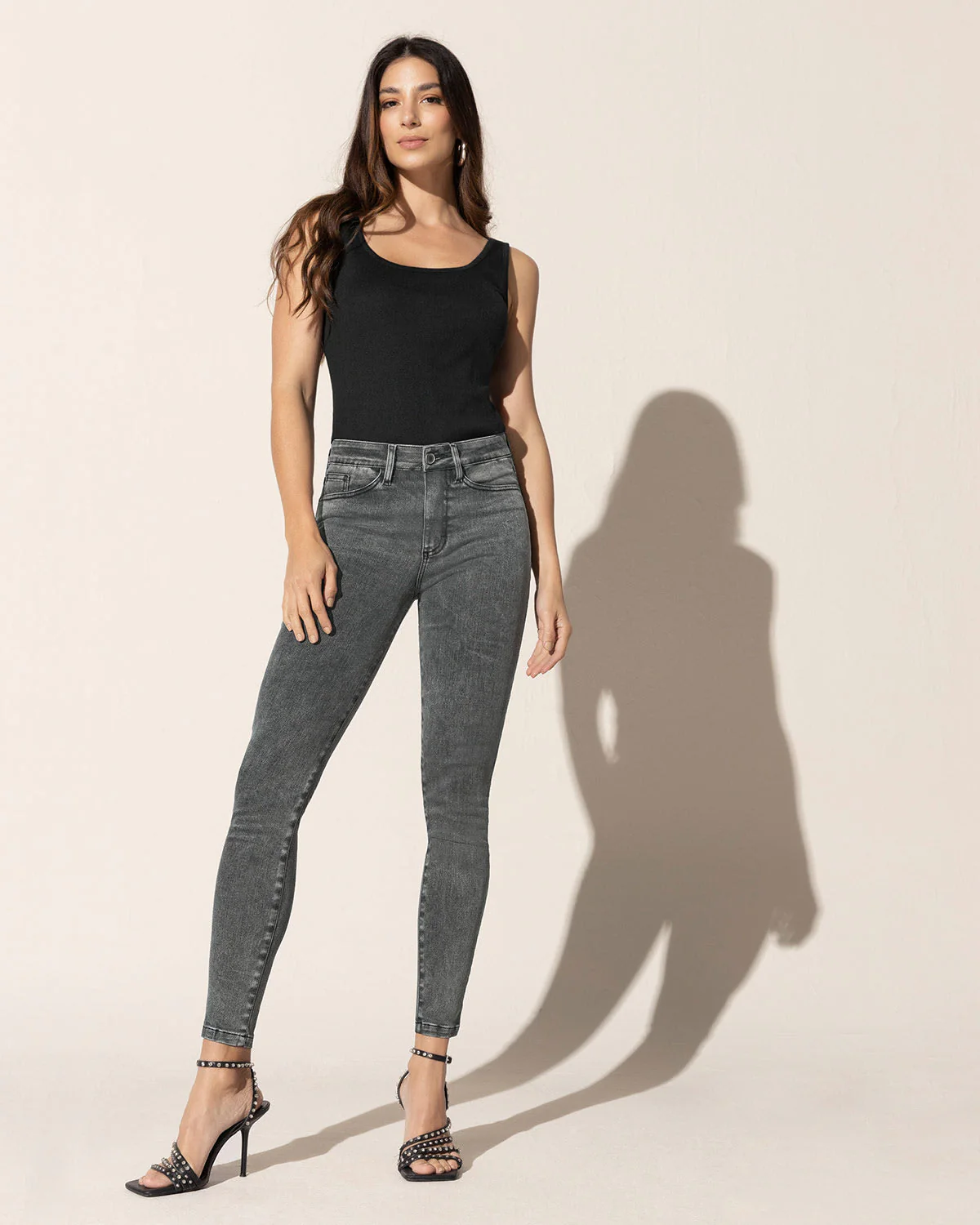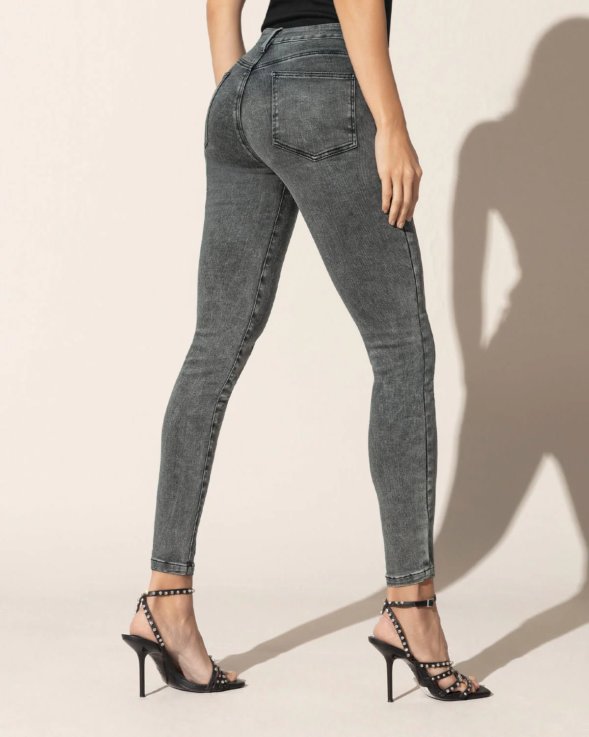 Este skinny jean levanta cola es el básico de armario que todas necesitamos. Cuenta con pretina y bolsillos funcionales. Además, tiene desgastados en frente dándole un look más casual. Puedes usarlo con nuestras brasileras y panties invisibles y estar cómoda e increíble.
