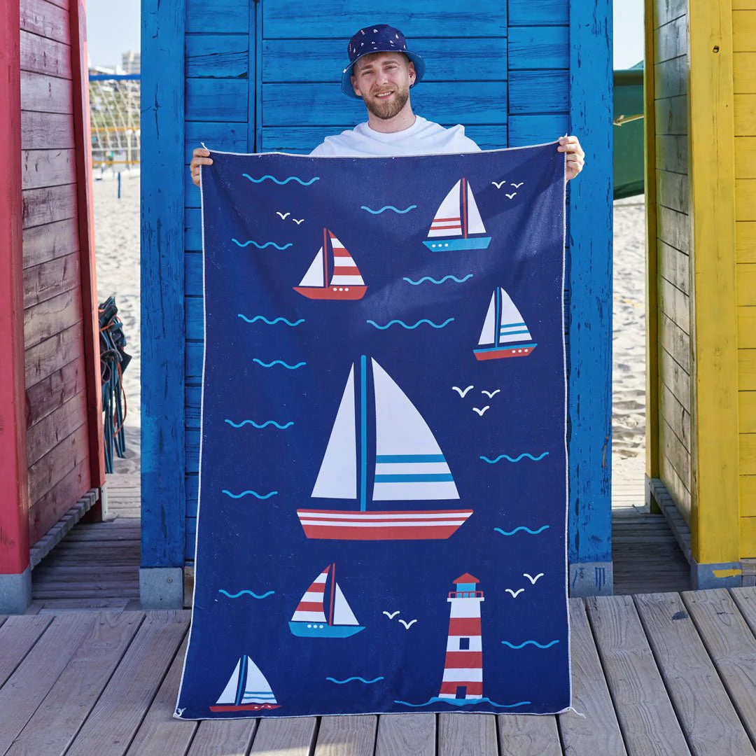 Toalla de baño con motivos marineros VELERO, muy ligera, suave y absorbente. Toalla grande de divertidos y originales diseños de kyliecrazy, ideal para playa, piscina o para tu hogar. Confeccionada en color azul marino. ⛵⛵🏴☠️🏴☠️🏴☠️ 🌞🌞 «be special»