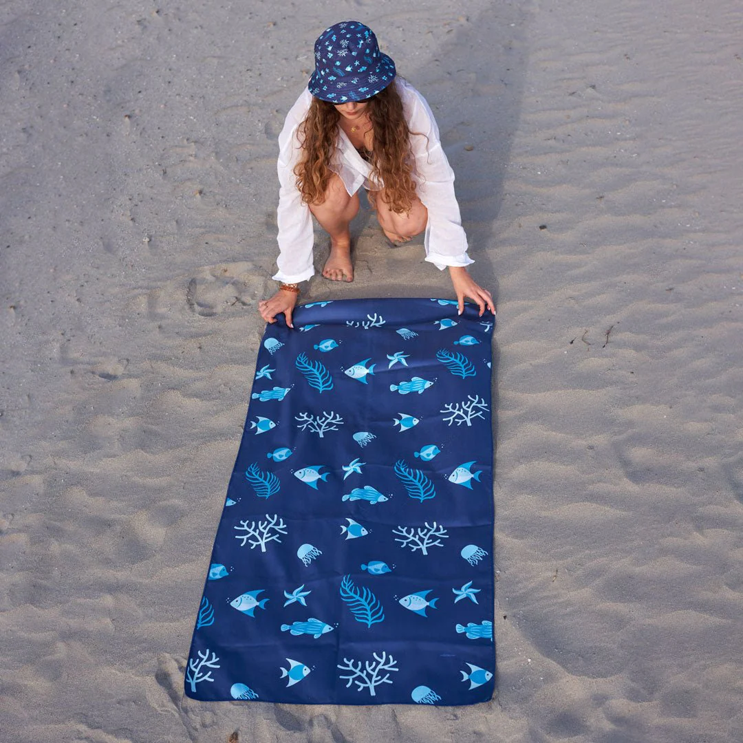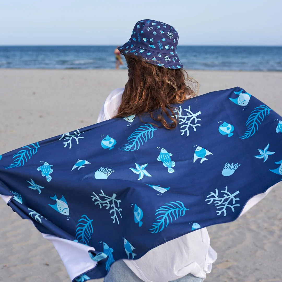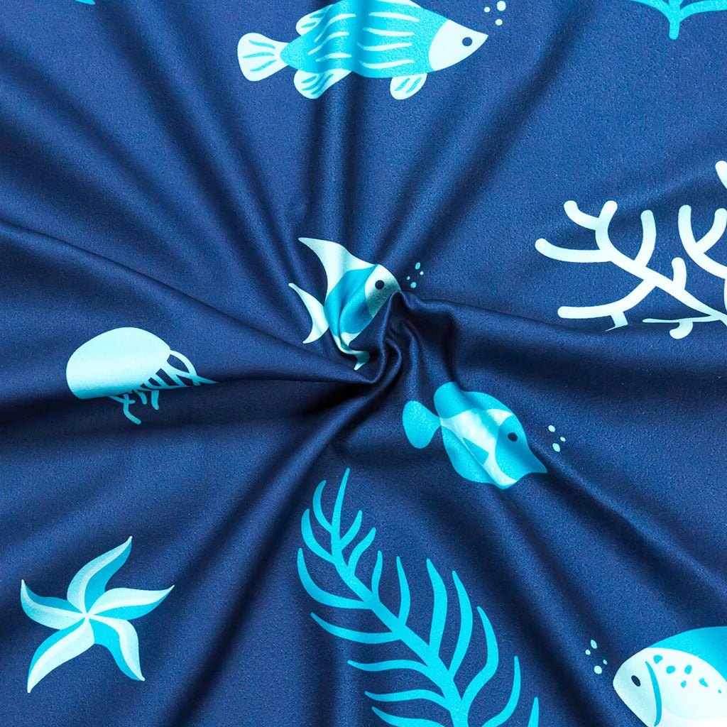 Toalla FITNESS con diseño animal PECES, de distintos tonos azules, confeccionado en microfibra de secado rápido, muy ligera y absorbente. Ocupa muy poco espacio y tiene un tacto muy suave. Ideal para el hogar o para el gimnasio. 😎😎 🐟🐟
