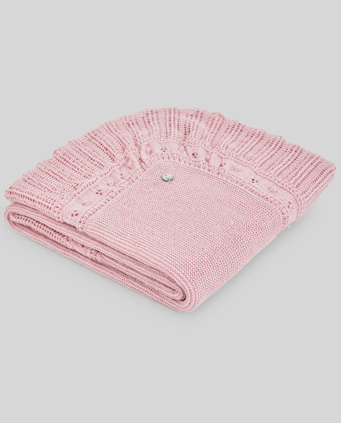 Toquilla de punto calado con terminación en picos, pensada para bebé. Su textura ligera y su diseño envolvente la hacen perfecta para los primeros paseos o para usar en el cochecito. Elaborada con materiales transpirables, proporciona calidez y confort.