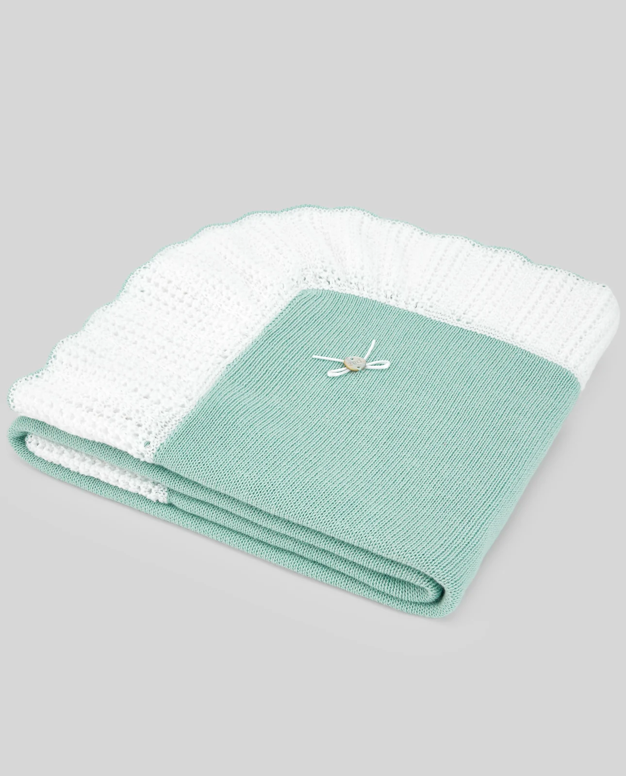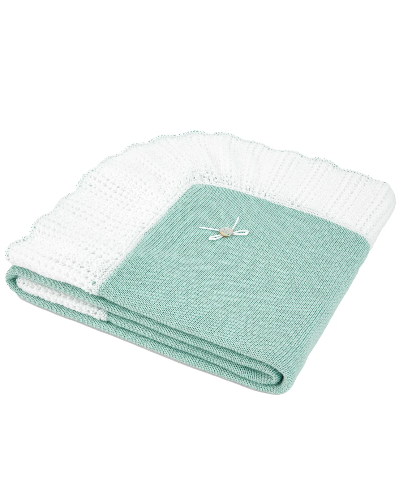 Toquilla de punto liso enmarcado con volante de punto calado a contraste.