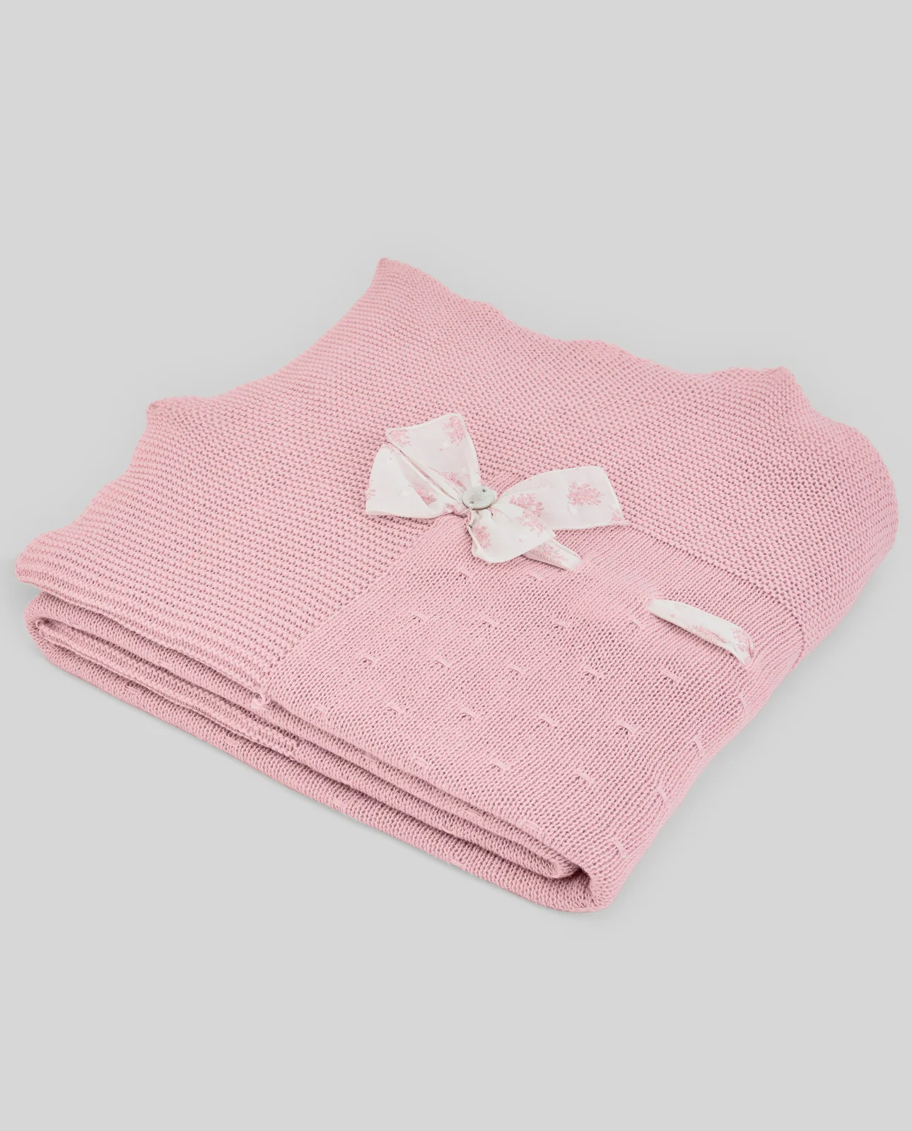 Toquilla de punto para bebé, con detalle de lazo estampado y pequeñas perforaciones decorativas. Suave y ligera, es perfecta para aportar calidez y estilo durante los primeros meses. Ideal como regalo o para ocasiones especiales.