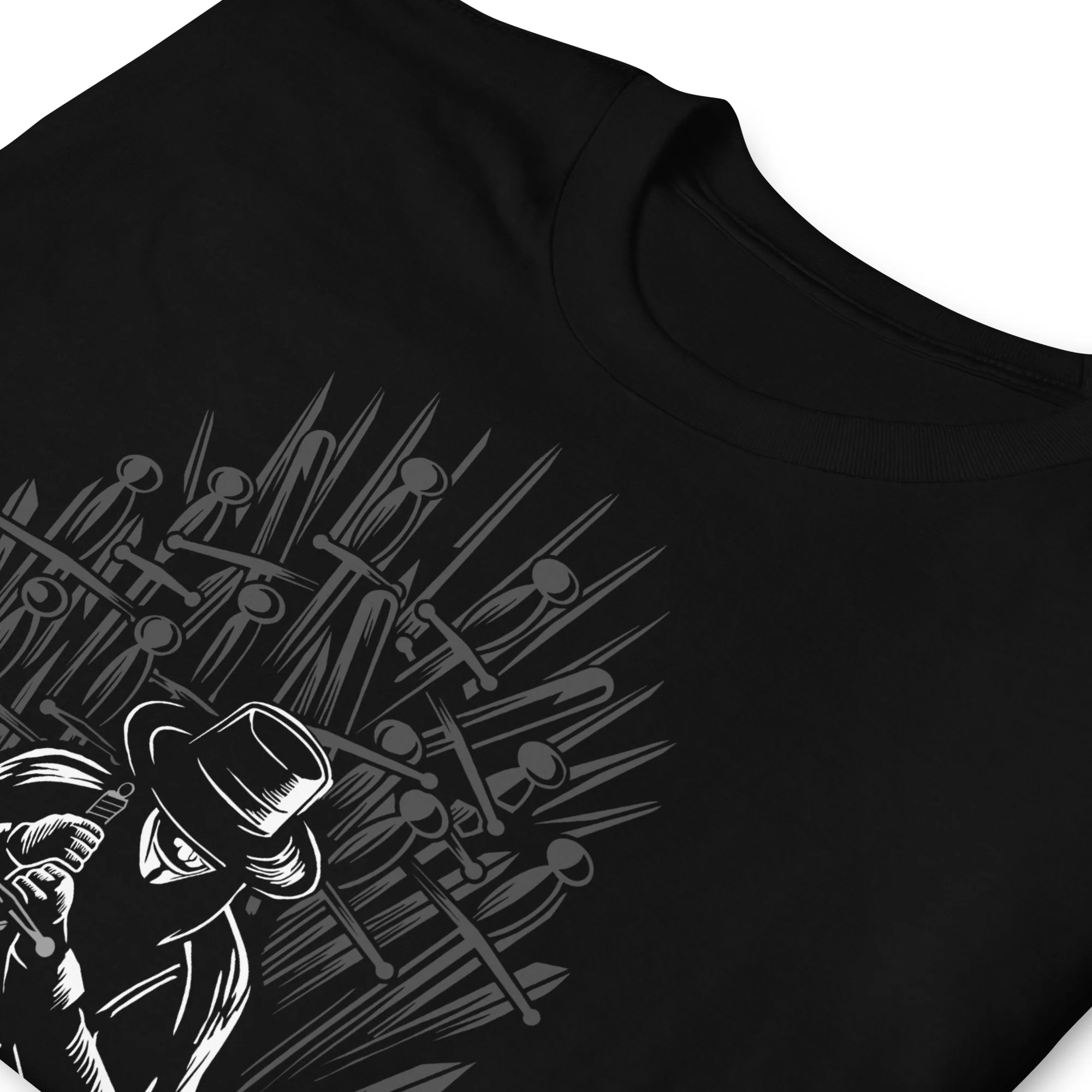 La camiseta Vendetta Throne de Siempre Original fusiona el espíritu anárquico de V de Vendetta con el poder absoluto del Trono de Hierro de Juego de Tronos, creando una escena tan silenciosa como intimidante.