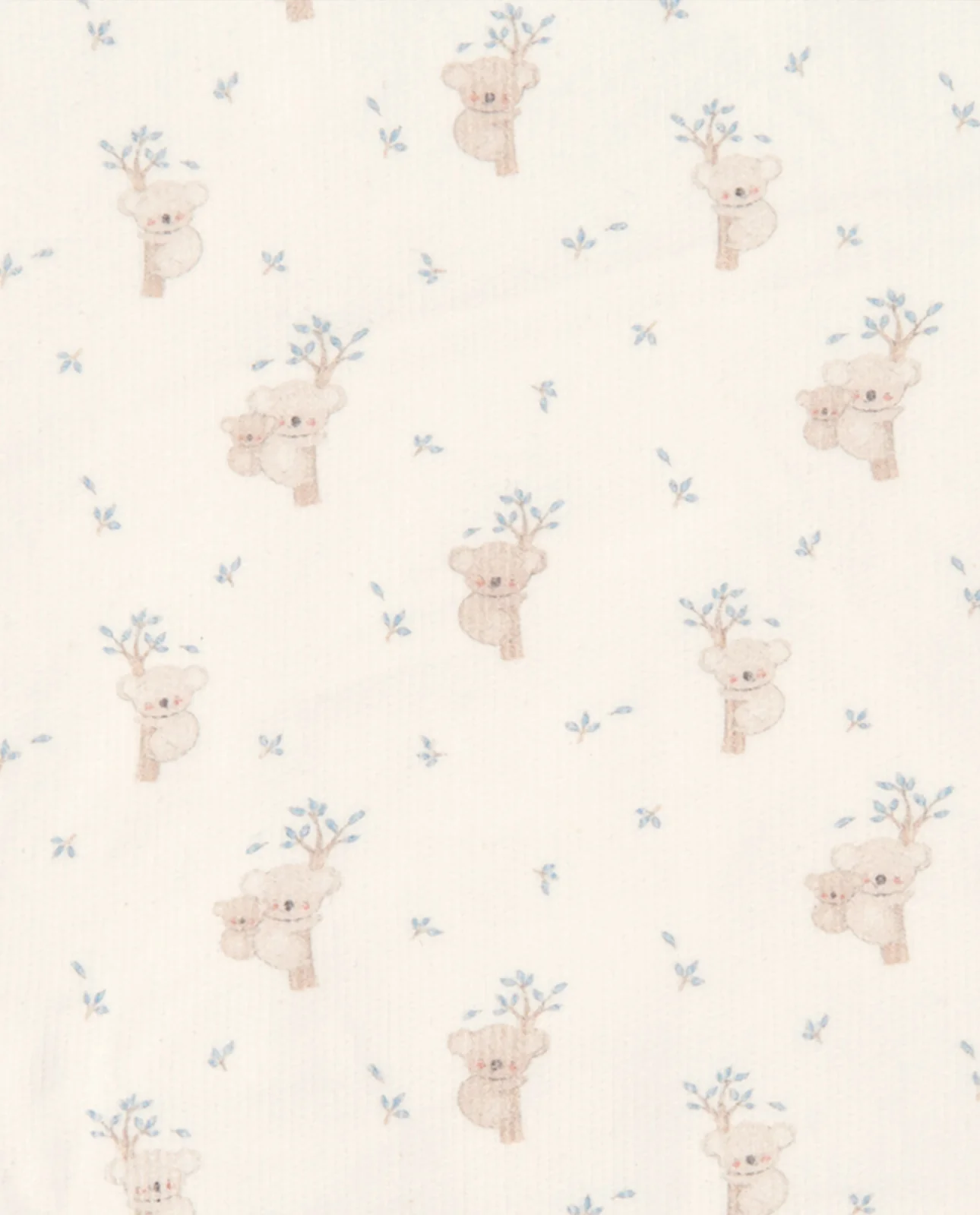 Vestido con cuerpo de punto y falda estampada. Cuello redondo con detalle de smock bordado y lazo decorativo. Manga larga con cierre trasero abotonado.