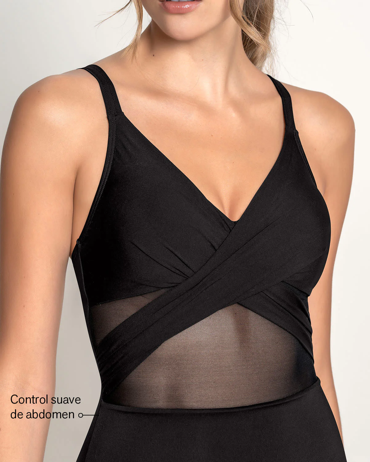Con este vestido de baño entero de control suave en abdomen bajo, lucirás espectacular ¡una silueta clásica, elegante y sofisticada! Sus copas prehormadas en espuma le dan una forma más redondeada al busto, un realce suave y evitan que se marque el pezón. Está libre de arcos o varillas y cuenta con una banda elástica en la base del busto que te da mayor soporte. Además, la capa de tul en la parte alta del abdomen y el detalle drapeado en las copas son espectaculares ¡para un toque de estilo único! Sus cargaderas son ajustables para que las adaptes a tu cuerpo. Utilízalo además como body exterior y combínalo con faldas, shorts y pantalones.