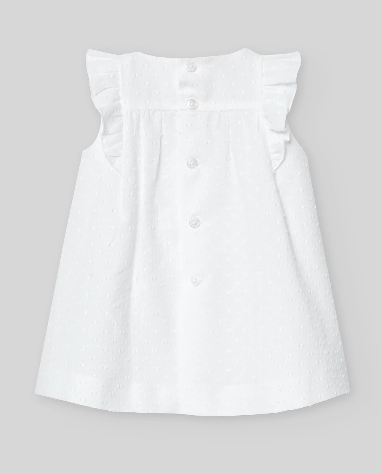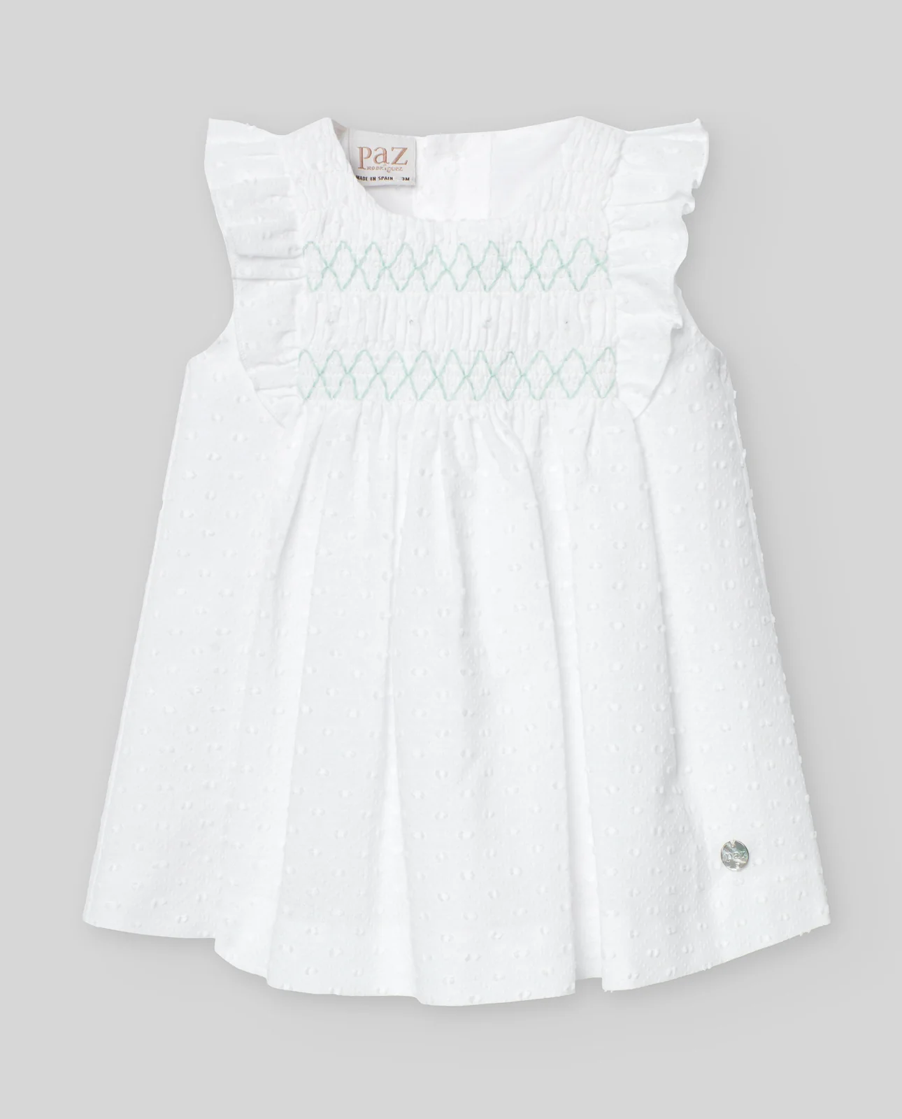 Vestido a la sisa en plumetty con nido de abeja a contraste.