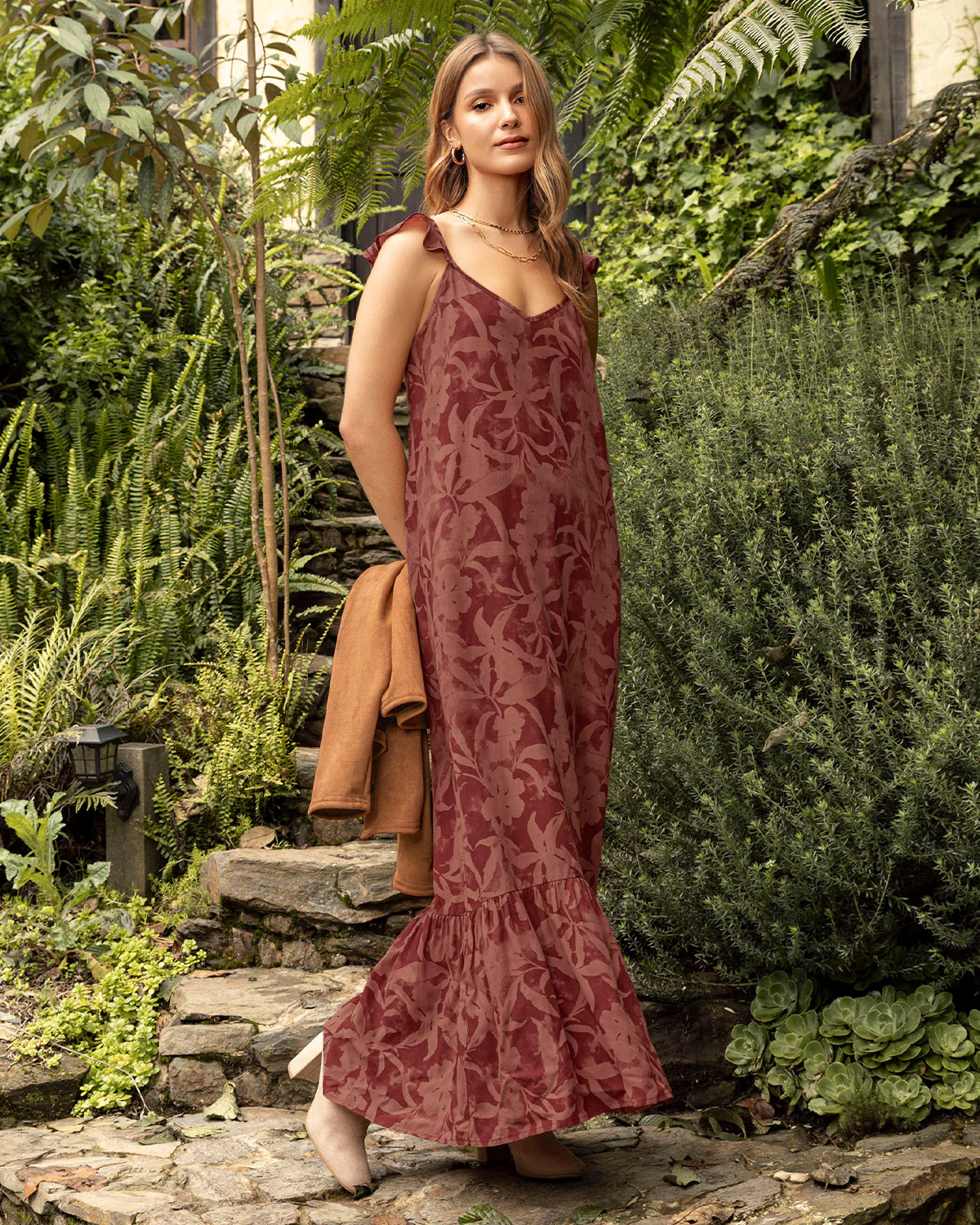 Este vestido es todo lo que has estado buscando. Es largo y cuenta con boleros en hombros y ruedo, cuello en V y su escote en espalda le da el toque perfecto. Combínalo con nuestras chaquetas y saquillos y tendrás un look increíble. También puedes complementarlo con nuestros panties o shorts de control de aspecto invisible en tono beige ya que las telas delgadas lucen muy bien en nuestro cuerpo con este tipo de ropa interior y nada se marca.