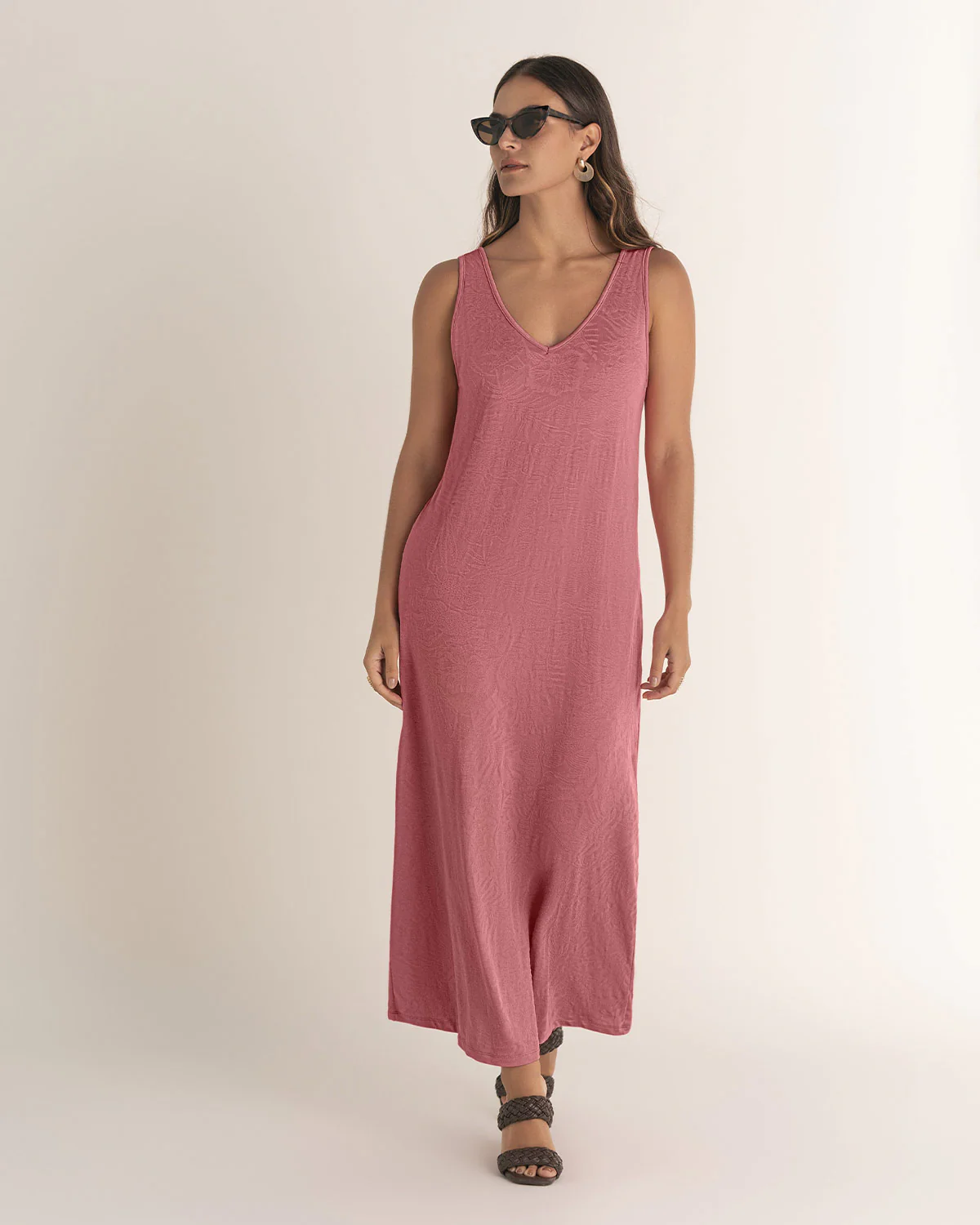 Vestido midi básico en tela con textura