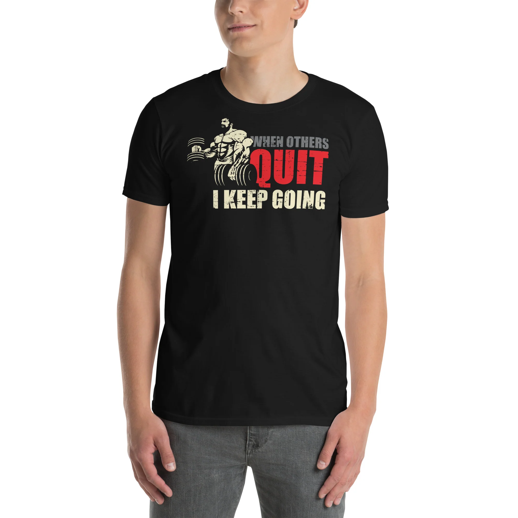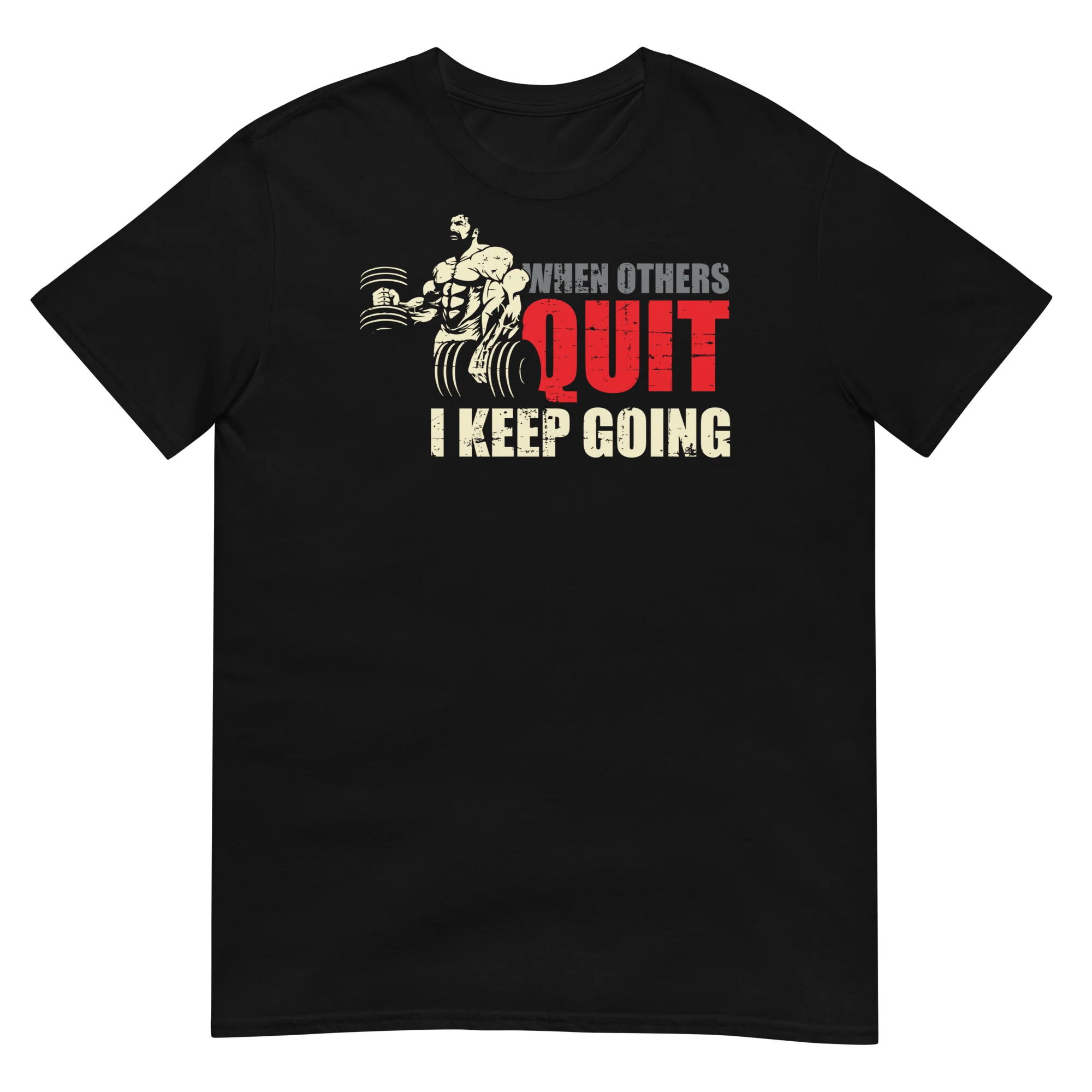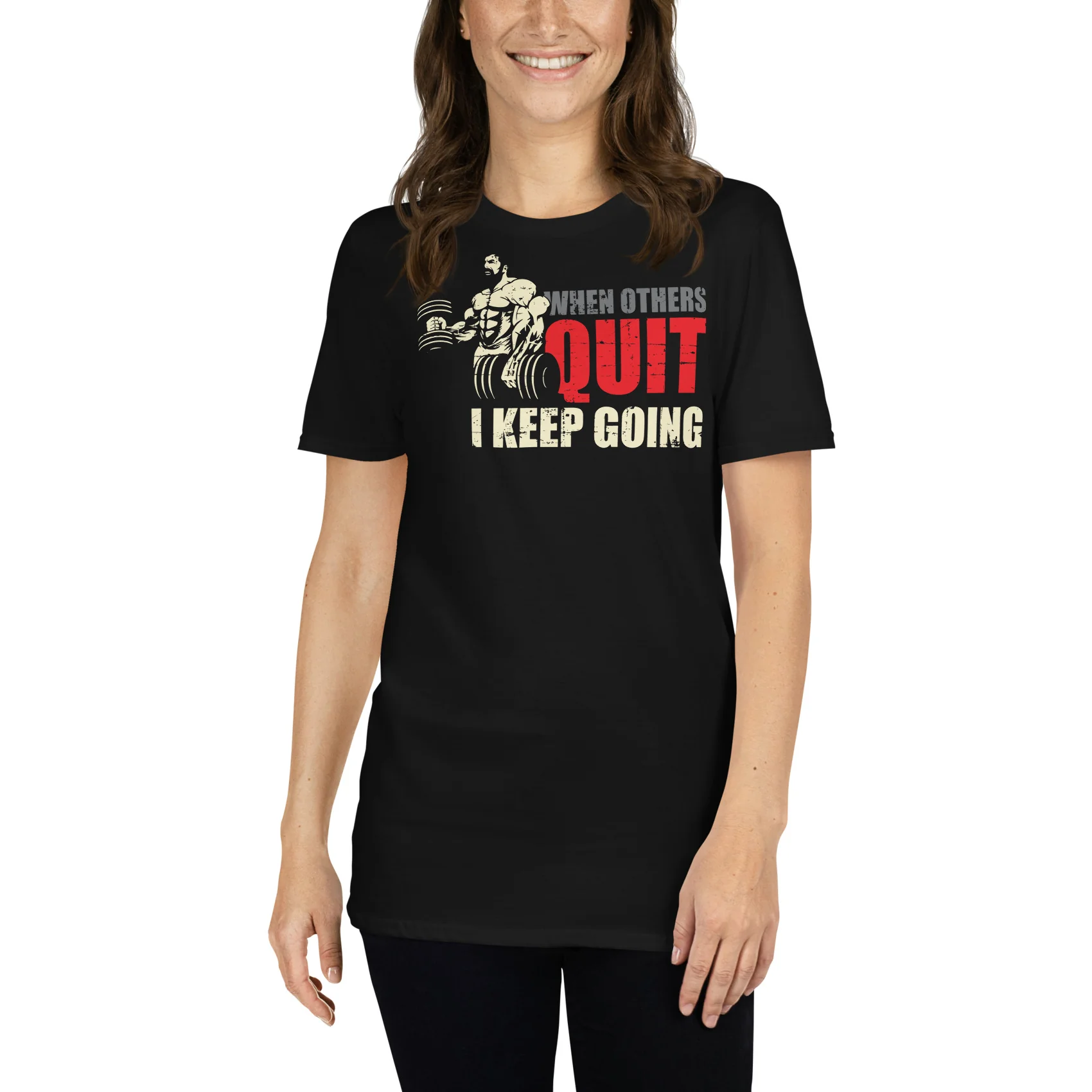 Camiseta con el mensaje When Others Quit I Keep Going (Cuando otras renuncian yo sigo yendo) perfecta para motivarte en tus entrenamientos en el Gimnasio.