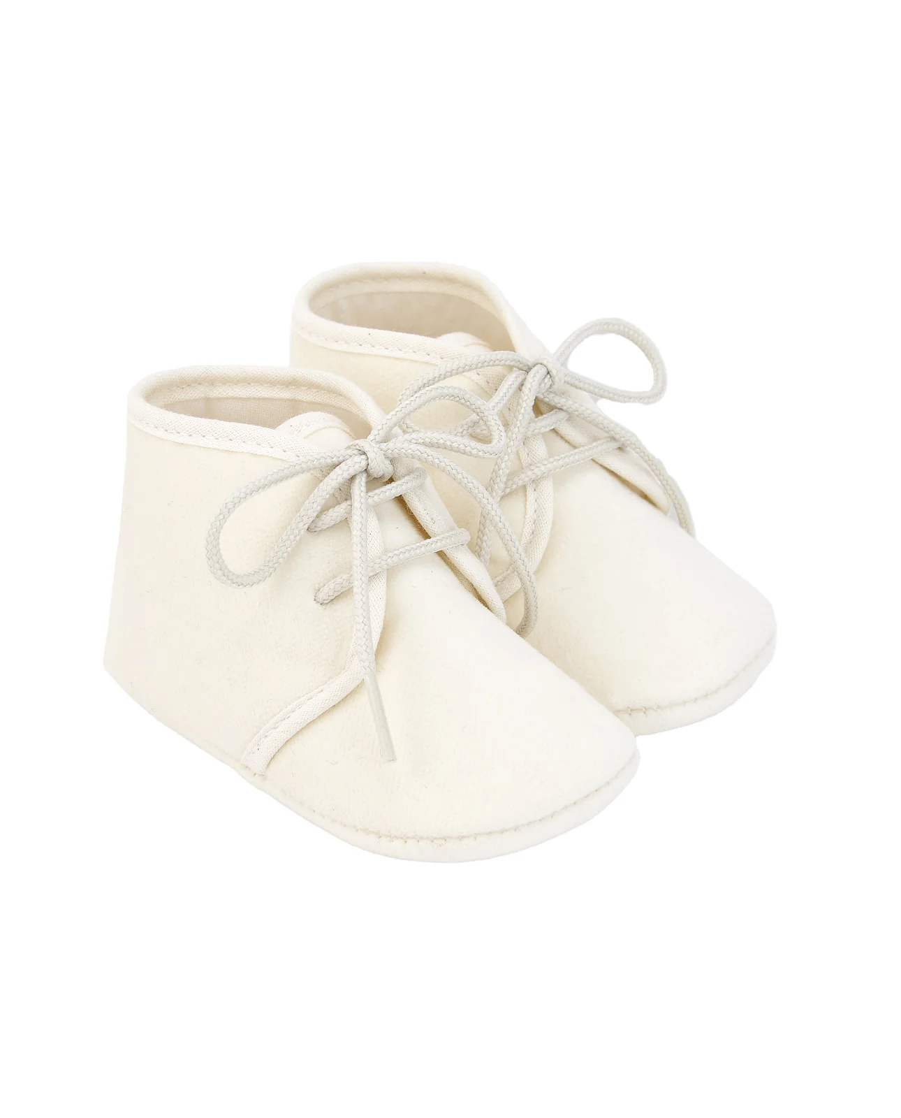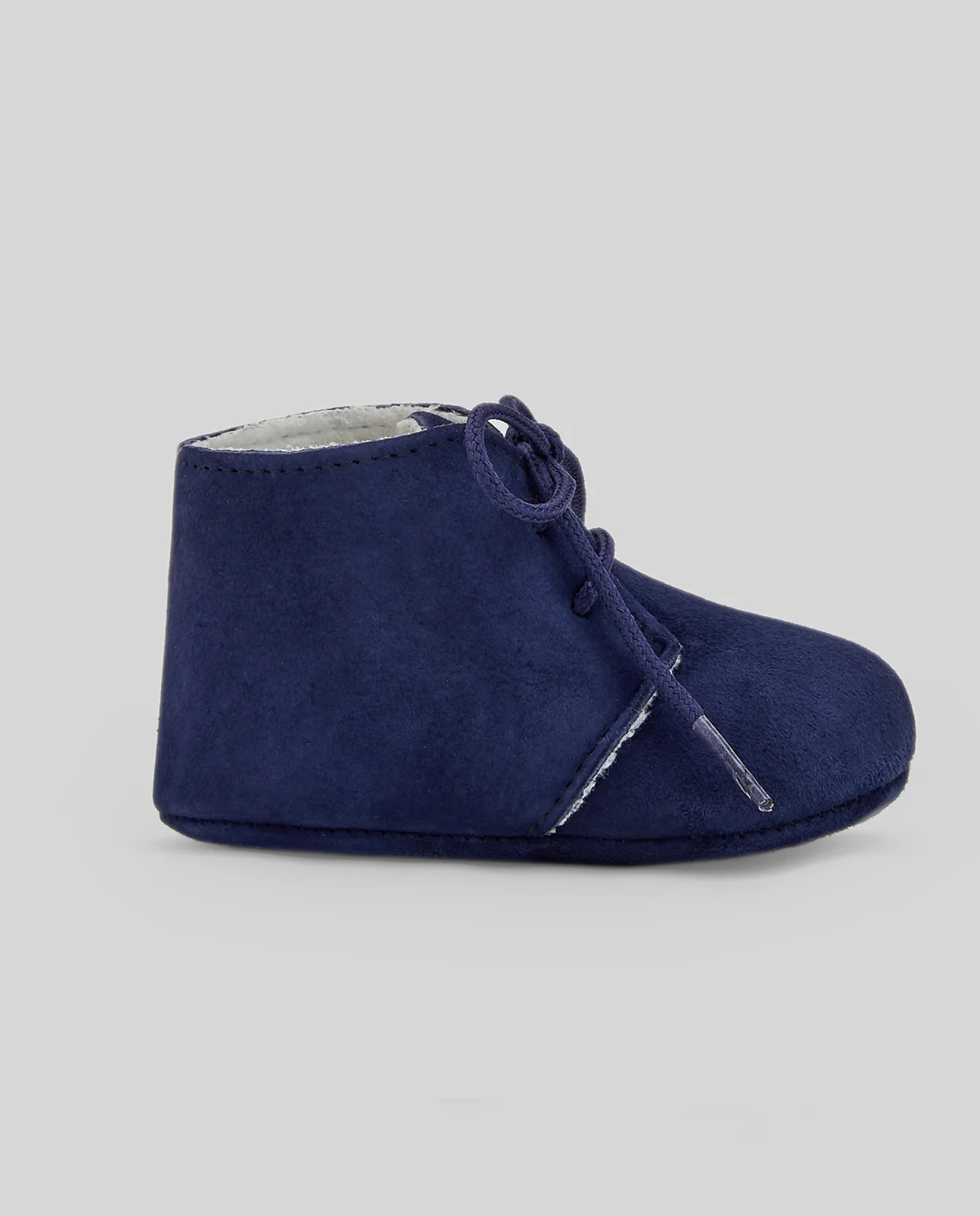 Botita de terciopelo de diseño suave con cordones al tono. Su acabado delicado y elegante la convierte en una opción ideal para ocasiones especiales.