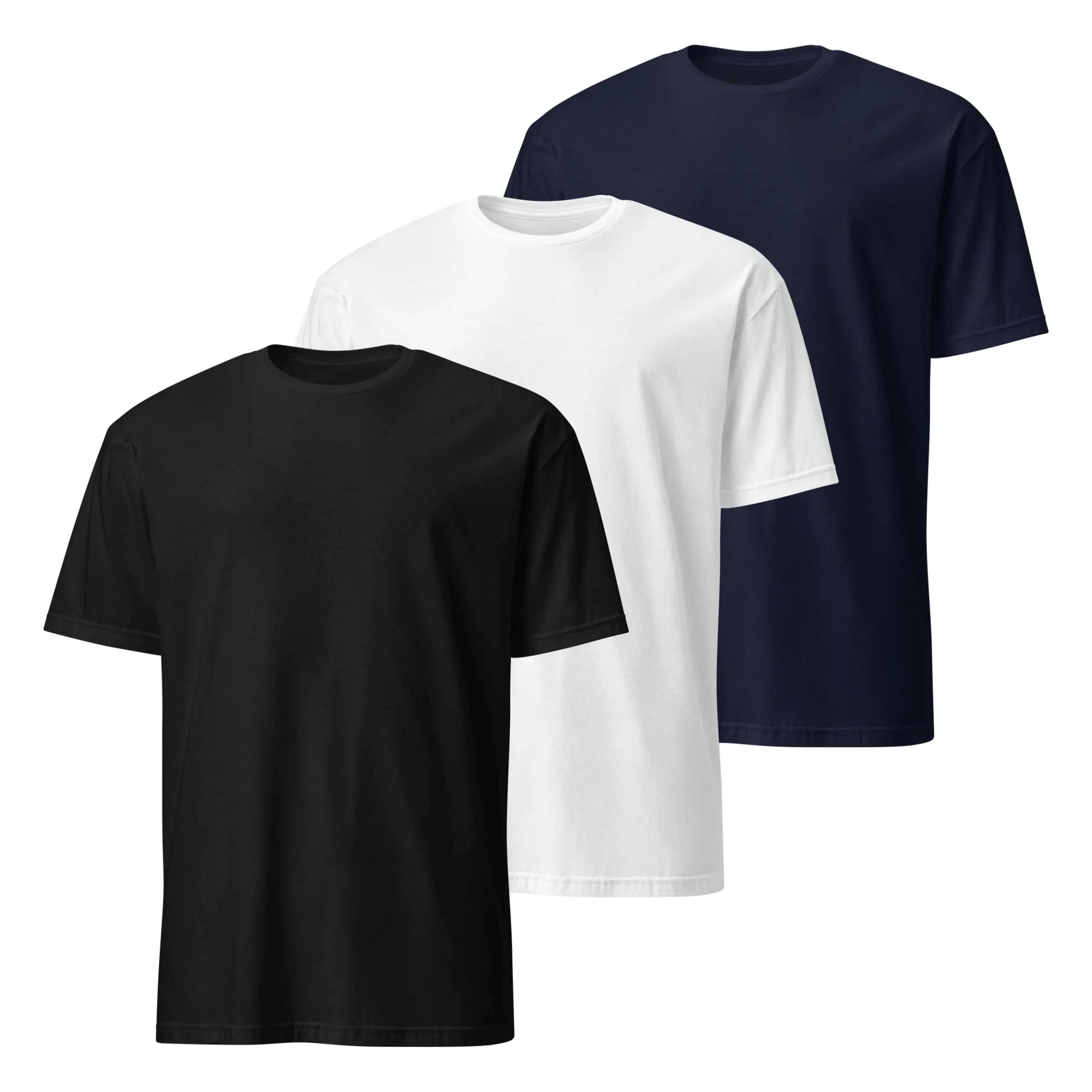 Pack de 3 Camisetas de Color Blanco, Negro y Azul Marino